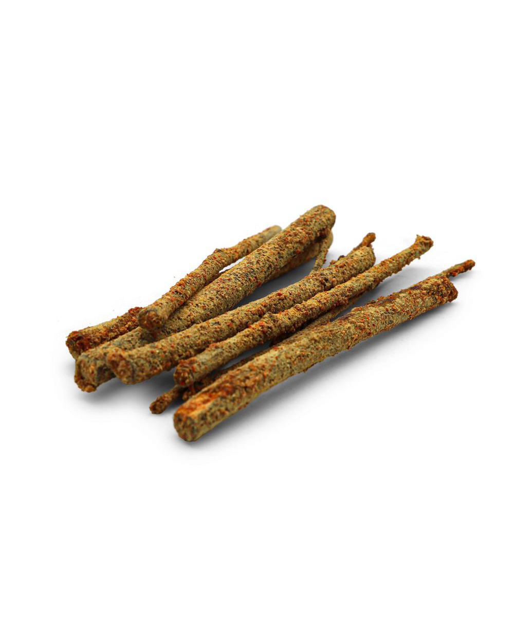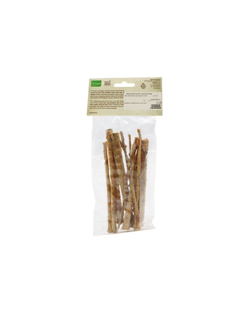 Mrkev dokonale doplňuje výhonky lísky a vytváří tak pamlsek, který kombinuje funkci žvýkání s lehkou, přirozenou odměnou.
