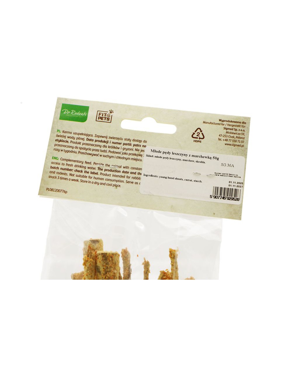Mladé lískové výhonky jsou přírodní a aromatickou pochoutkou pro hlodavce a minaturní králíky, vytvořenou s ohledem na jejich zdraví. Kombinace pečlivě sušených lískových výhonků se sušenou mrkví a vytváří tak chutnou a výživnou svačinku.