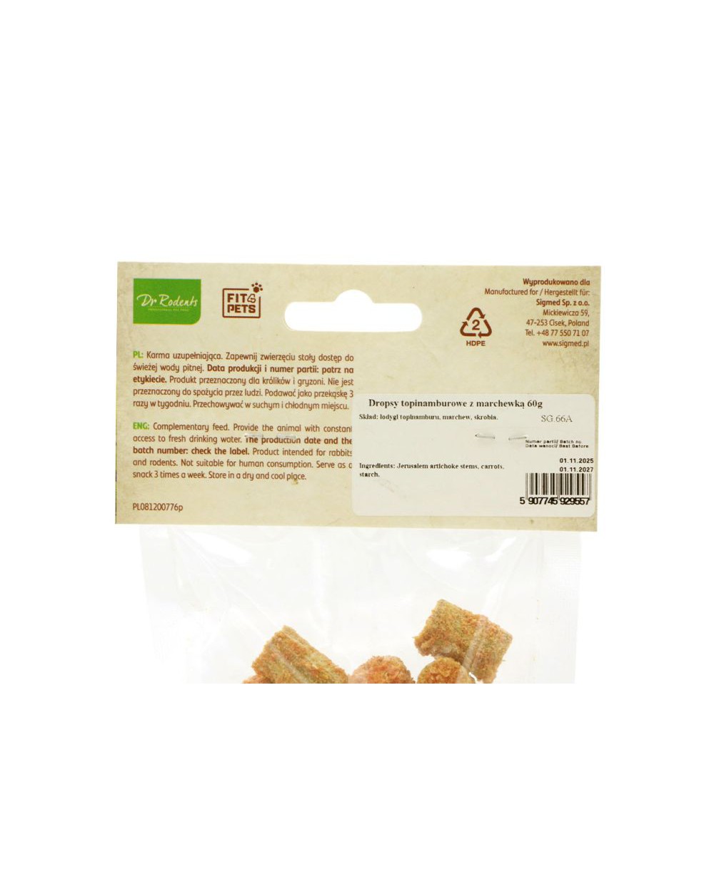 Dropsy z topinamburu jsou chutnou a přírodní svačinkou, vytvořenou speciálně pro denní stravu hlodavců a králíků (miniaturní, zakrslé). Kombinace topinamburu a mrkvíposkytuje cenné živiny, které podporují správné trávení a celkovou pohodu.