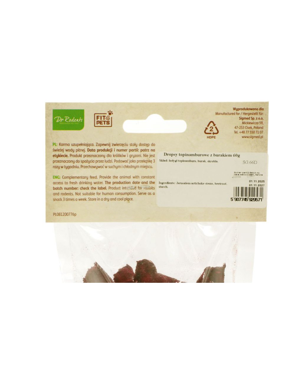 Dropsy z topinamburu jsou chutnou a přírodní svačinkou, vytvořenou speciálně pro denní stravu hlodavců a králíků (miniaturní, zakrslé). Kombinace topinamburu a červené řepyposkytuje cenné živiny, které podporují správné trávení a celkovou pohodu.