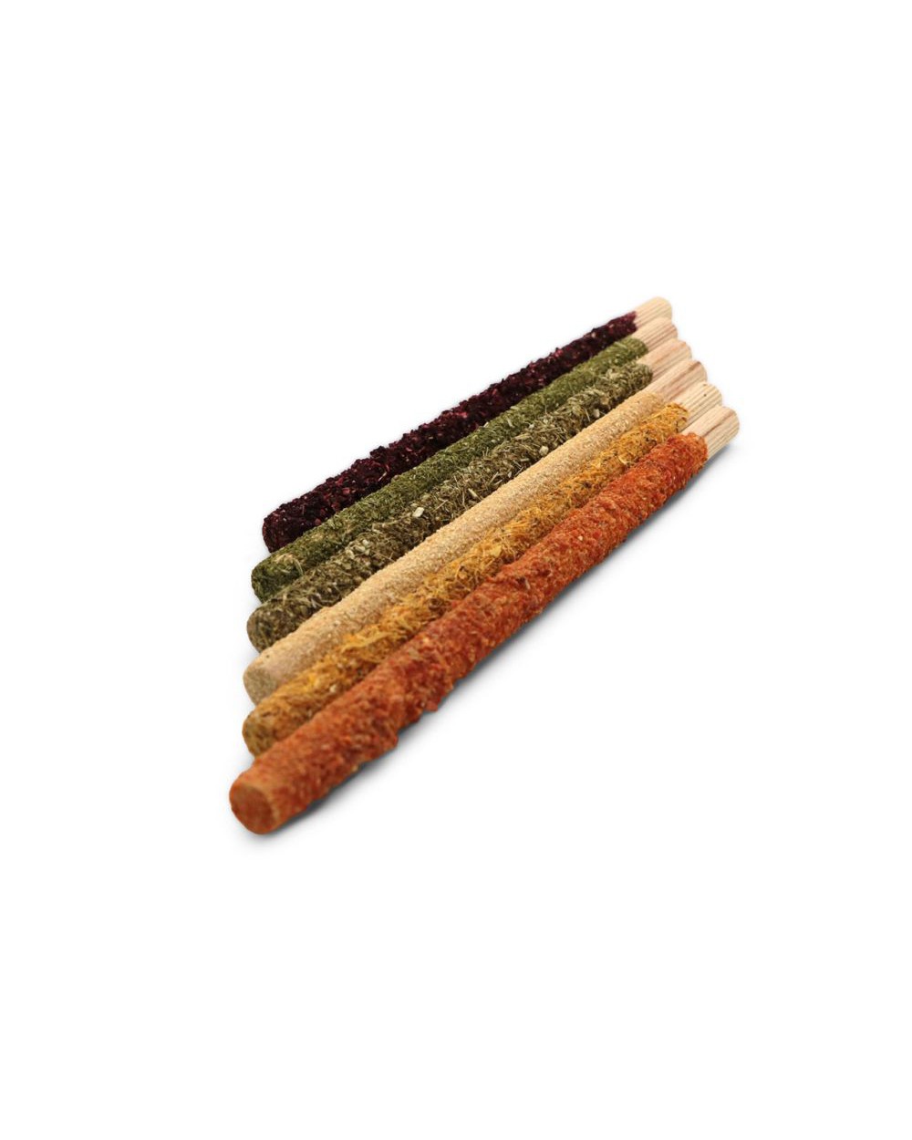 Balení obsahuje 6 tyčinek z bukového dřeva s různými příchutěmi:
