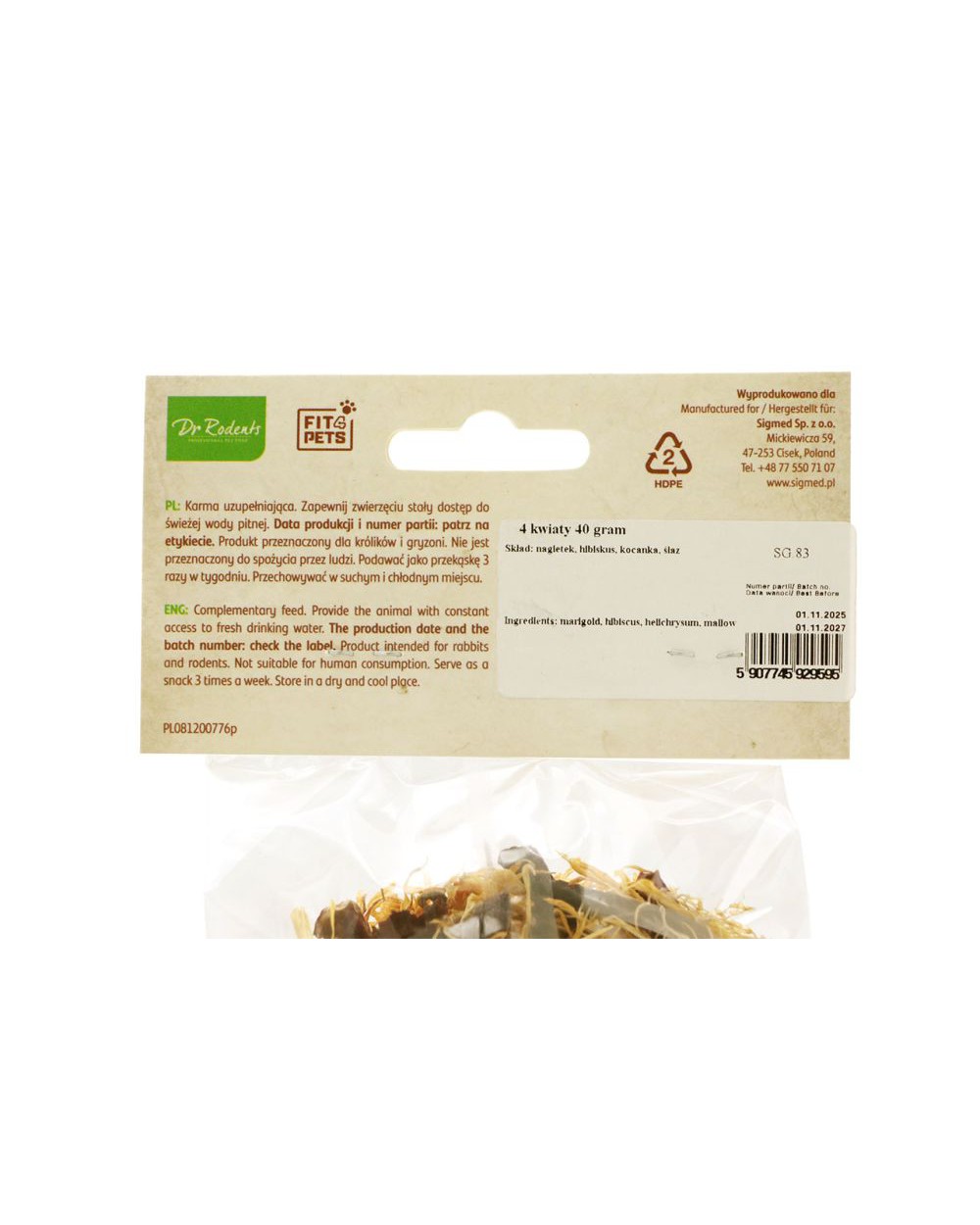 Směs pro hlodavce a miniaturní králíky 4 květiny značky Dr Rodents 40g se skládá ze 4 smíchaných květů: