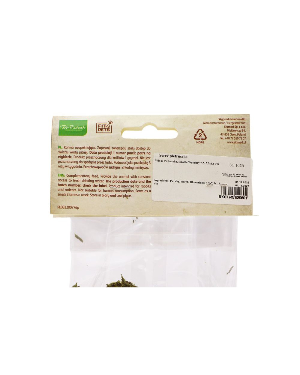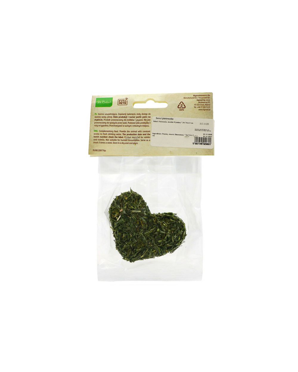 Petrželkové srdíčko, značky Dr. Rodents 35g je zdravý pamlsek ve tvaru srdce. Pečlivě vybrané přírodní ingredience podporují trávení, imunitu a každodenní aktivitu vašeho mazlíčka.