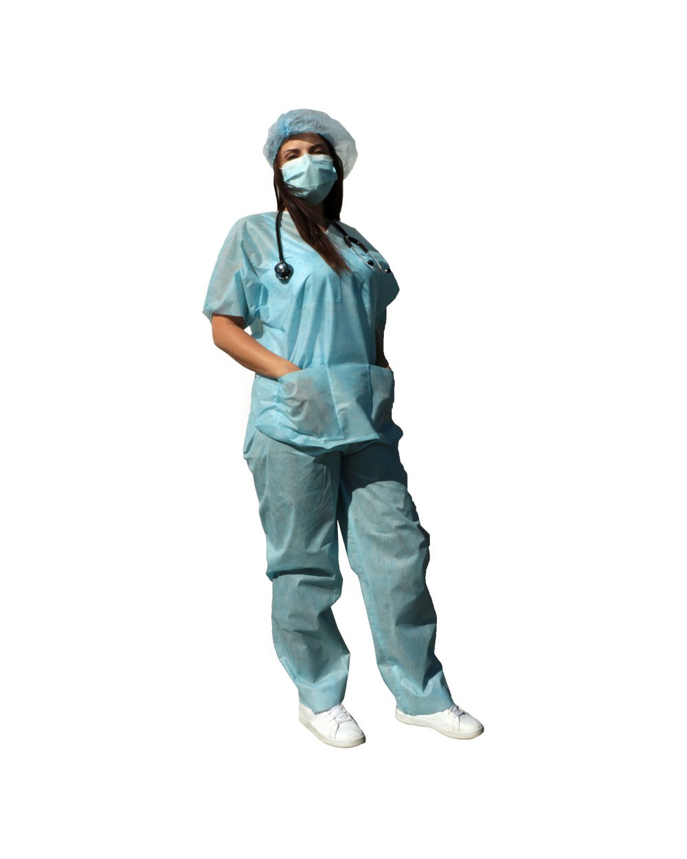 Dvoudílný chirurgický komplet k jednorázovému použití. Komplet obsahuje halenu a chirurgické kalhoty, baleno jako set. Komplet je vyroben z prodyšné a otěruvzdorné SMS polypropylenové netkané textilie. Materiál zajišťuje vysokou odolnost proti pronikání vlhkosti a mikroorganismů.