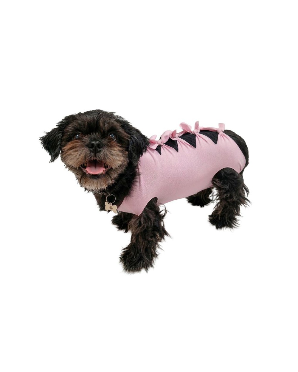 Růžová pooperační košilka značky Fit4Pets, vázaná