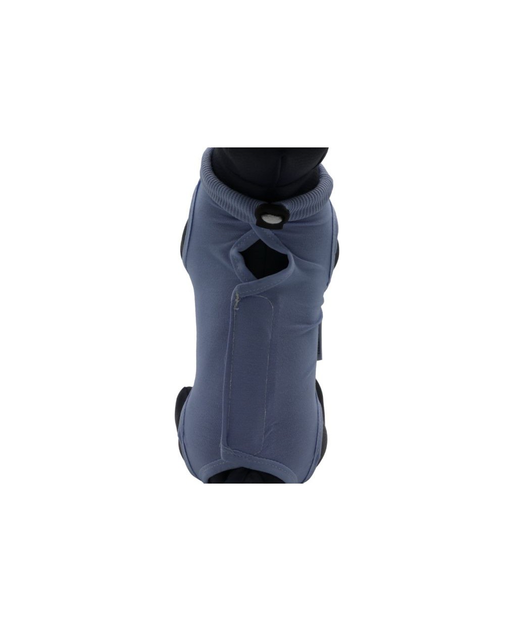 Modré pooperační body značky Fit4Pets, suchý zip je funkční oděv určený pro psy a kočky, kteří se zotavují z operace, zranění nebo dermatologického ošetření.